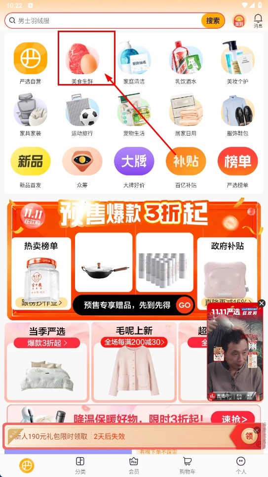 点击【美食生鲜-分类图标】,进入美食生鲜板块。