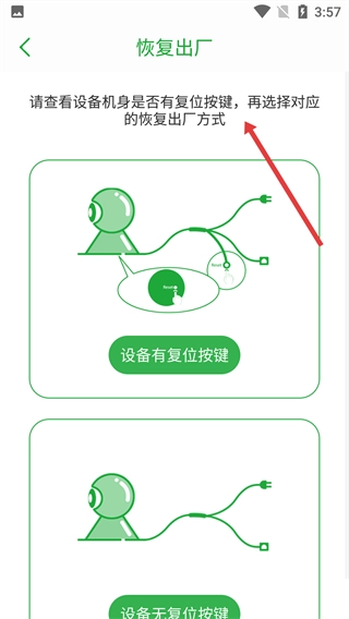 先检查设备机身上是否存在复位按键,再根据实际情况选用对应的【恢复出厂】操作方式。