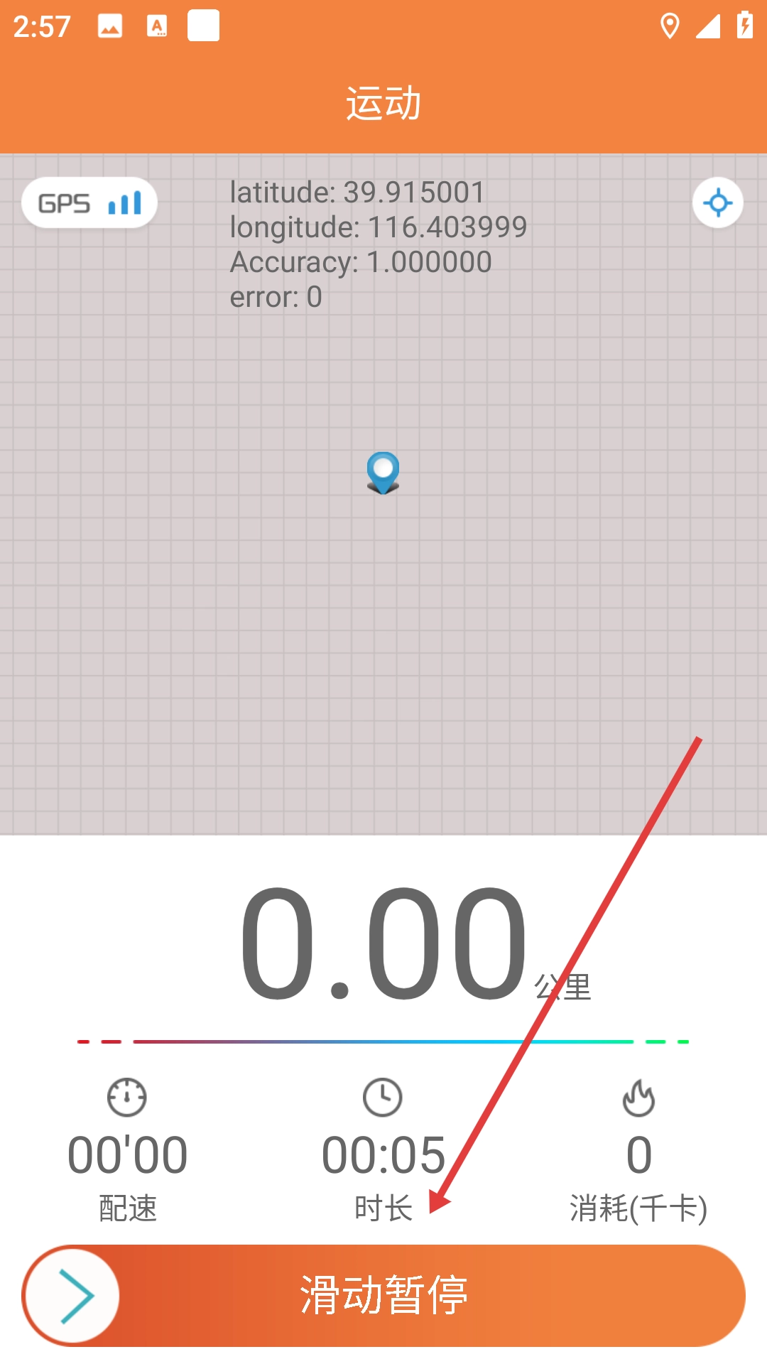 运动时可以查看GPS定位、运动距离、时长等数据,也能滑动【滑动暂停】按钮来暂停运动。