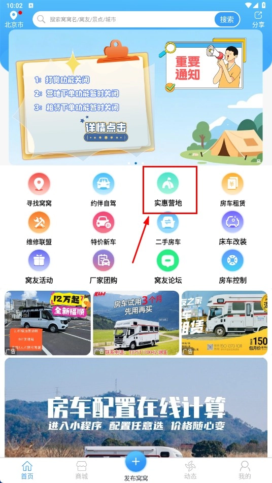 点击【实惠营地-功能按钮】,进入营地列表页面。