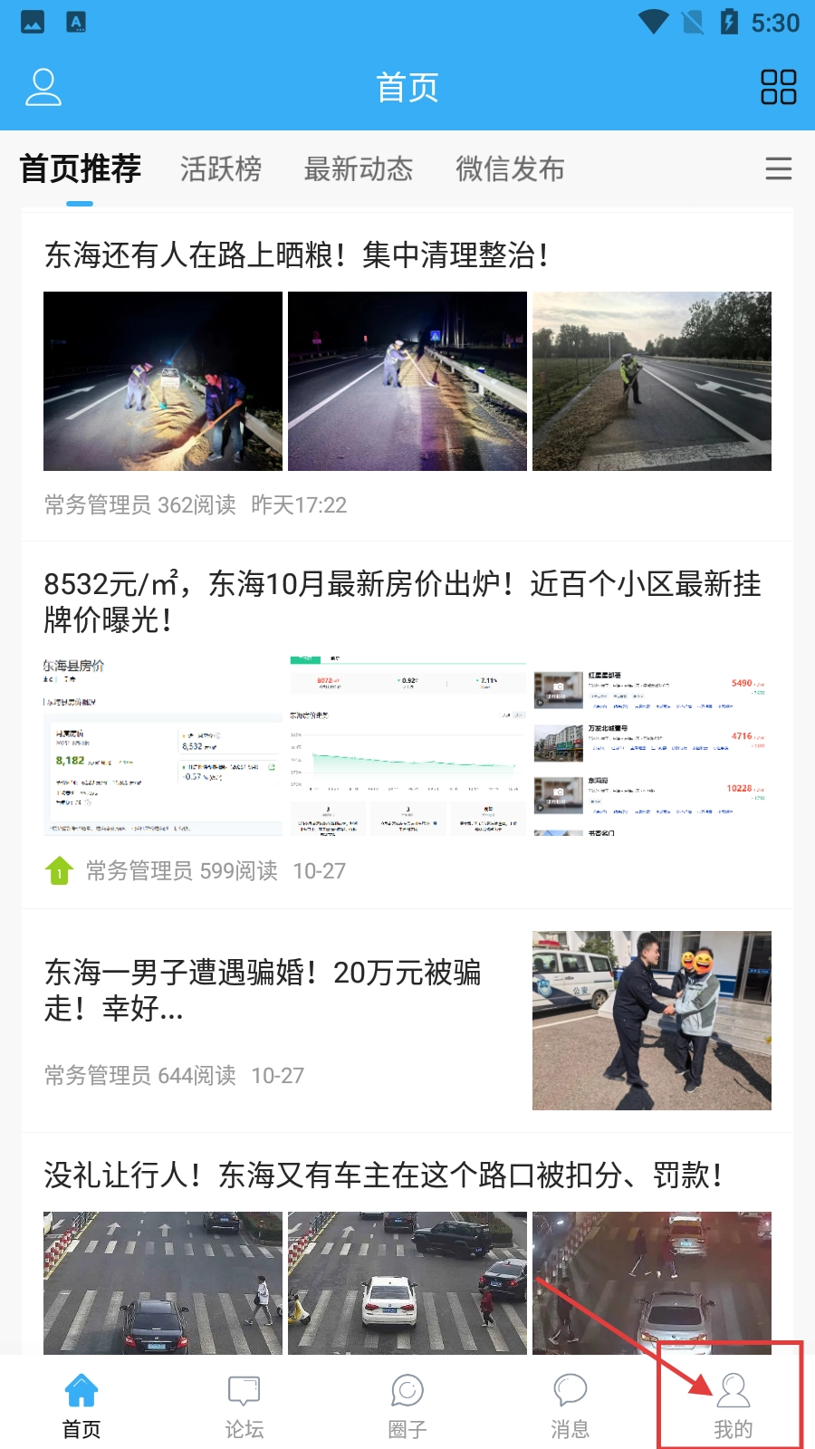 在这个资讯类首页,点击底部的【我的】按钮,就能进入个人中心界面。