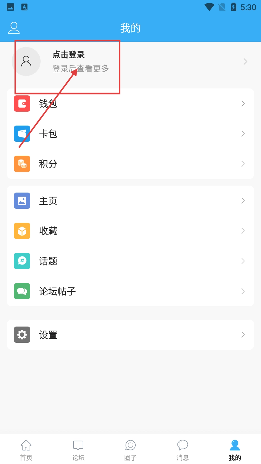 进入个人中心页面后,点击标有【点击登录】的区域,就能跳转至登录界面。