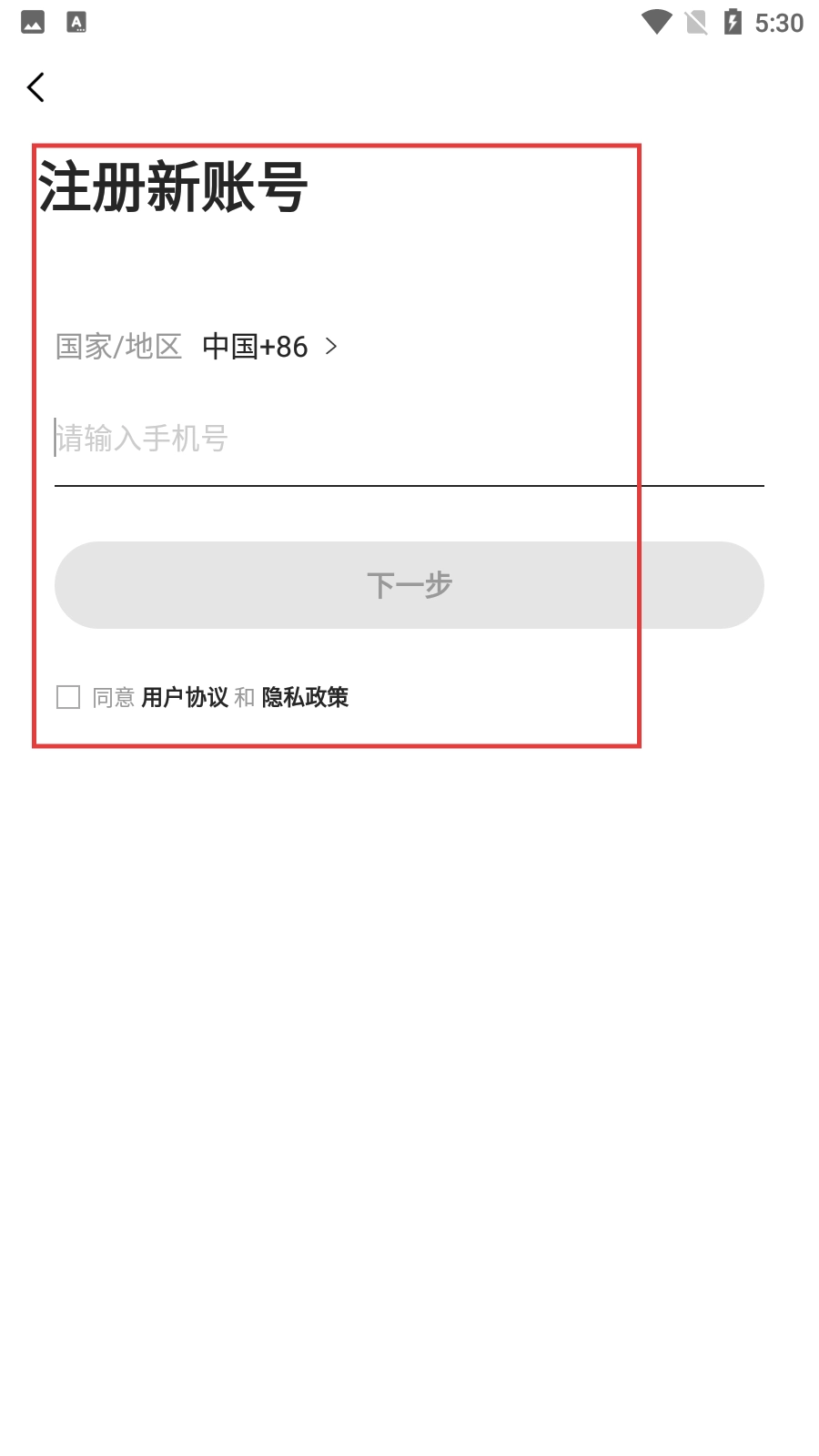 在注册页面,填写手机号并勾选相关协议后,点击【下一步】按钮即可完成新账号的注册流程。