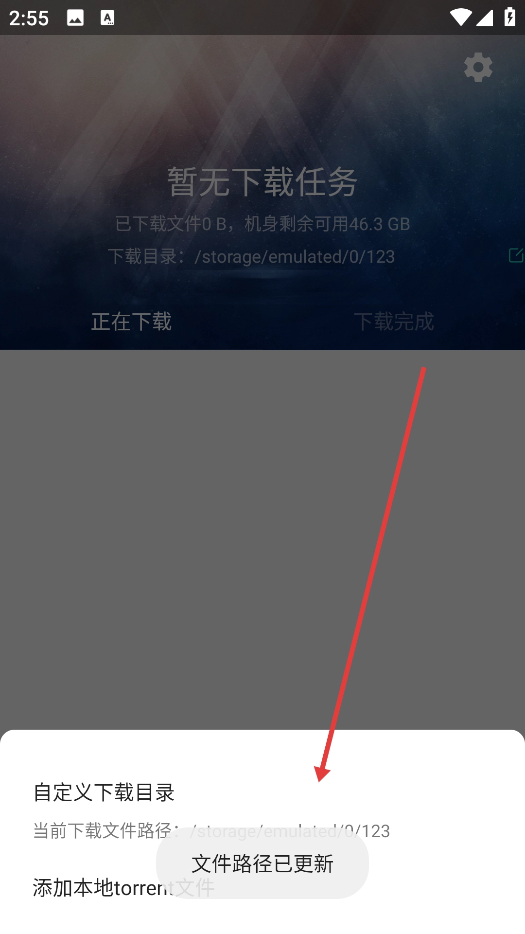 路径选择操作结束后,界面会显示“文件路径已更新”的提示,这意味着自定义目录已成功设置。