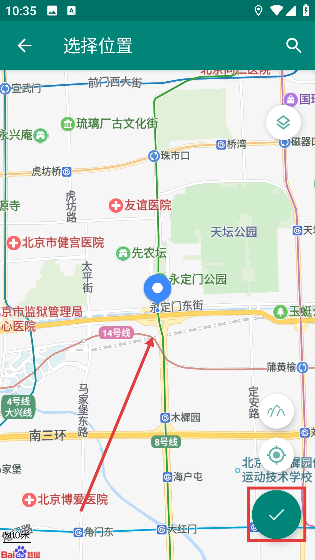 在地图选择界面选定目标位置后,点击右下角的确认按钮。
