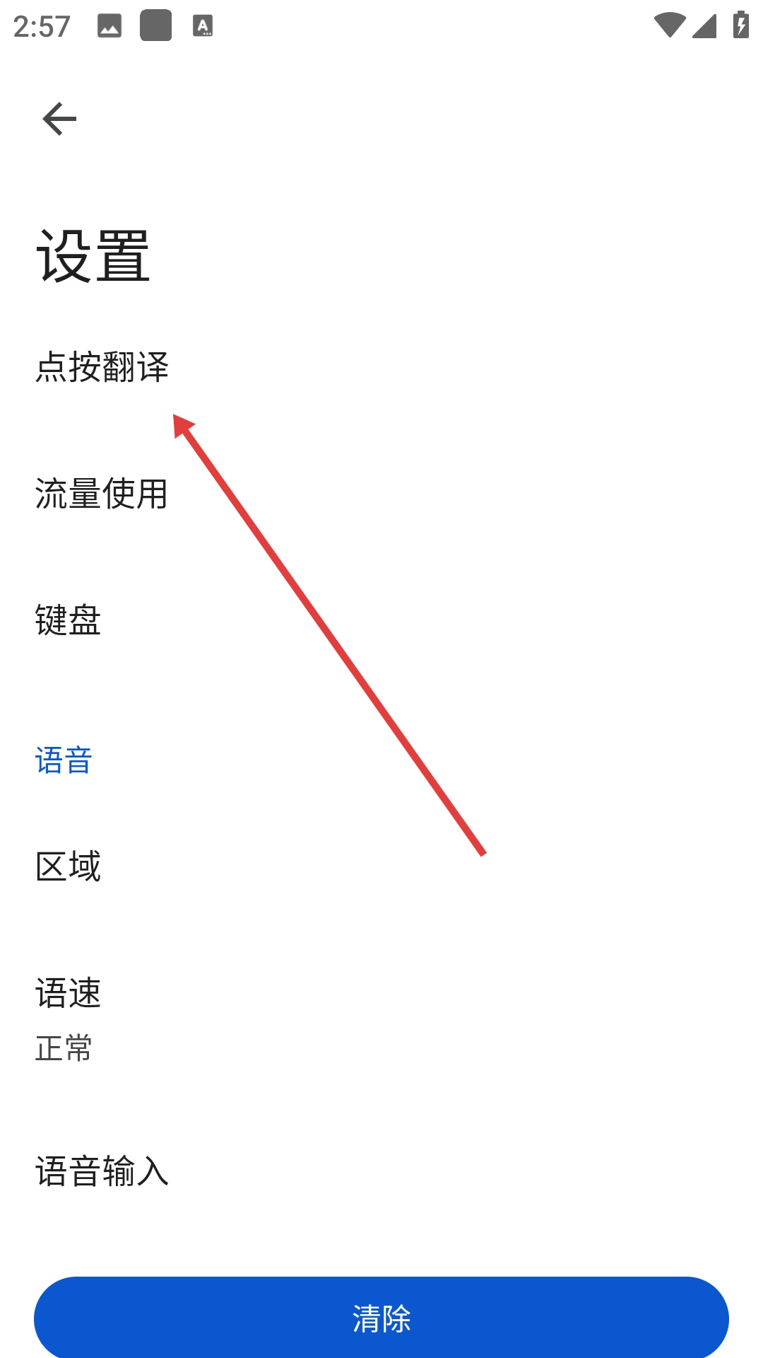 进入设置页面后,找到并点击【点按翻译】选项,即可进入点按翻译的设置界面。