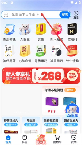 新人注册268元礼包,买药低至1元起