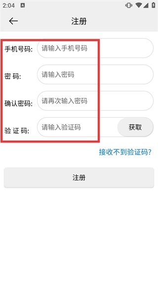 在注册页面,需要按顺序填写【手机号码】【密码】【确认密码】,并且要获取并填写【验证码】。