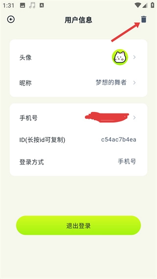 在用户信息页面点击右上角的【垃圾桶图标】,即可启动账号删除流程。