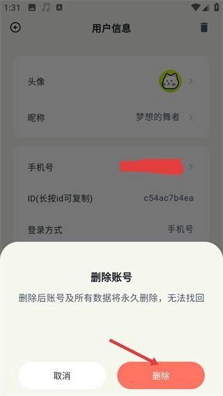 在删除账号的弹窗里点击【删除】按钮,就能完成账号注销的操作。
