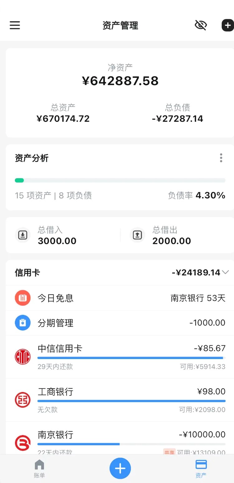 拥有完备且强劲的资产管理功能,能使所有资产信息一目了然,便于用户统筹规划财务事宜。