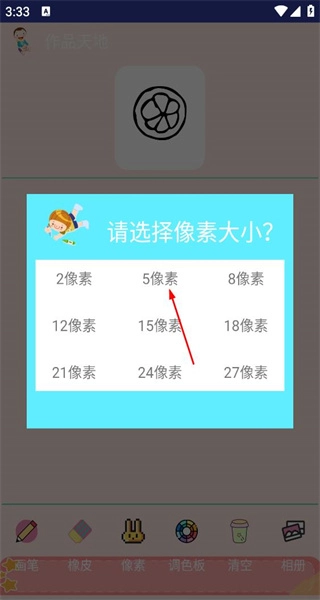 选择像素工具后,会弹出像素大小的选择框,在其中选定5像素即可;界面上还提供了2像素、8像素等多个不同的选项,方便进行调整。