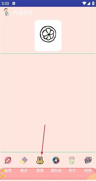 在作品天地的绘画页面中,找到并点击像素工具后,界面上还会呈现出画笔、橡皮、调色板等其他功能选项,大家能够依据自身的绘画需求来挑选合适的工具使用。