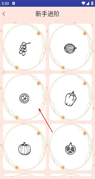 打开软件后,进入新手进阶界面,点击柠檬图案,就能进入绘画编辑页面。