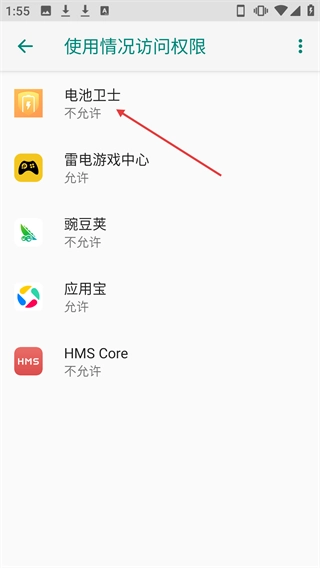 在使用情况访问权限列表中找到【电池卫士】应用。