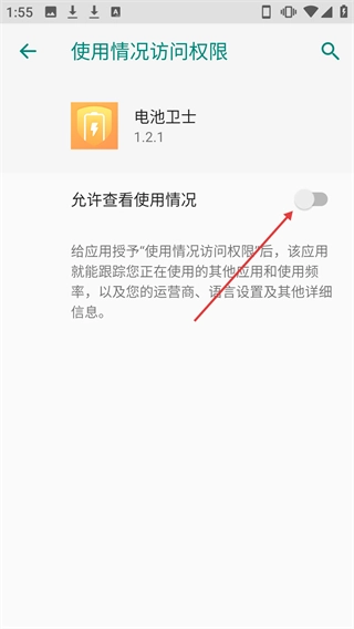 开启【允许查看使用情况】的开关后,电池卫士会获得相应权限,这样它就能开展耗电优化工作了。