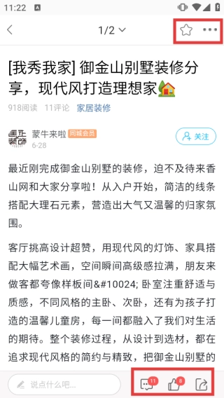 打开帖子后,你可以点击【收藏】按钮,也能通过【评论】【点赞】【分享】等功能与内容进行互动。
