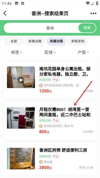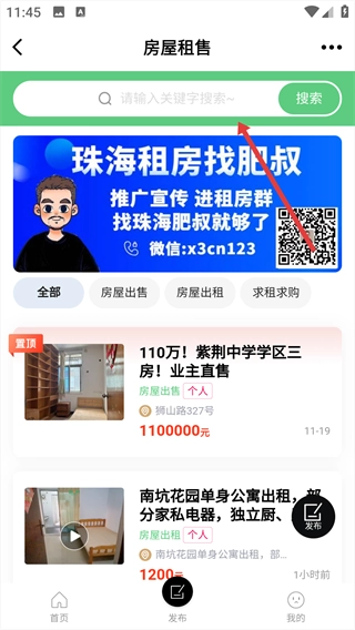 在房屋租售页面的搜索栏里输入相应区域,然后点击“搜索”按钮。