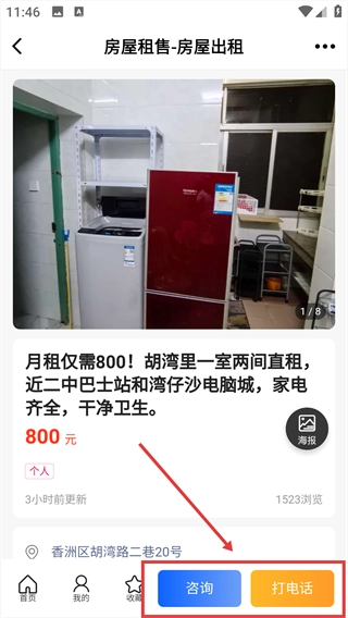 点击“咨询”或“打电话”按钮,就能和房源发布者交流租房的相关细节。