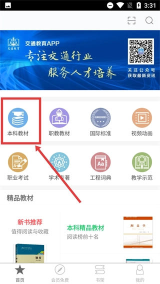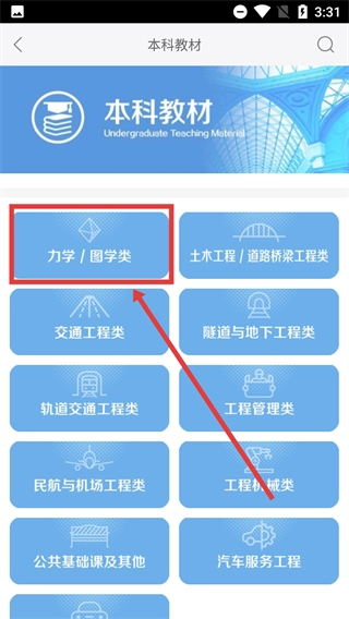 打开交通教育板块,点击【本科教材】这一选项,即可进入本科教材的分类页面。