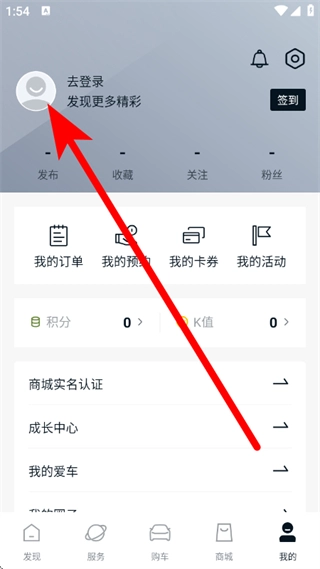 打开起亚,点击底部我的,进入我的页面。
