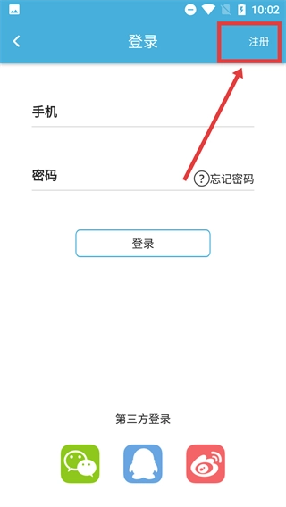 在登录界面,点击右上角的【注册】按钮,即可进入用户注册页面。