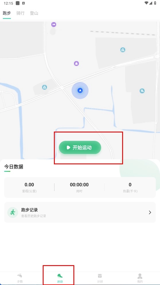 点击底部的“运动”栏目,选择跑步、骑行、登山等运动类型,然后点击【开始运动】按钮,即可开启运动记录功能。