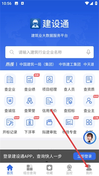 在建设通首页底部点击【我的】,进入个人页面就能使用更多功能服务啦。