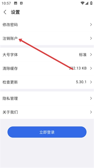 在设置界面中点击【注销账户】选项,即可进入注销注意事项页面。