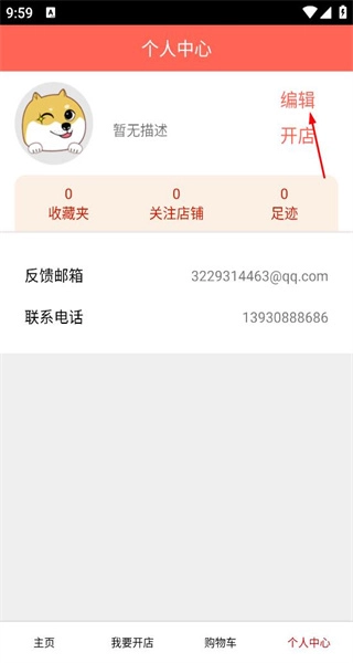 在个人中心页面,能看到编辑、开店等选项,点击这些选项后会进入登录界面,接下来就可以准备进行账号注册了。