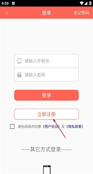 在登录界面,能看到手机号登录和立即注册这两个选项,点击立即注册后,就会进入会员注册页面。