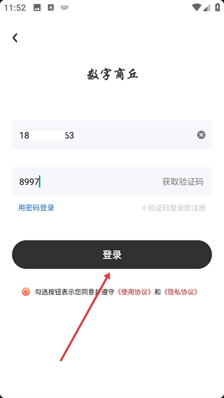 在输入完账号与验证码后,点击【登录】按钮,即可完成账号的登录流程。