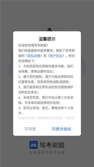 进入首页后,点击“同意并继续”按钮,授予必要权限,以便正常使用各项功能。