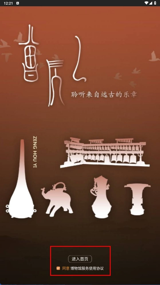 勾选同意博物馆服务使用协议后,点击【进入首页】按钮,即可进入博物馆主界面。