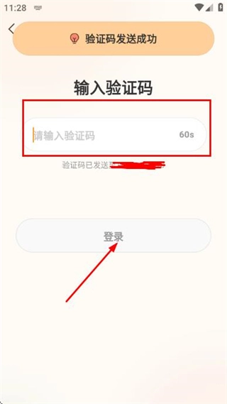 在验证码输入页面填写好验证码,接着点击登录按钮,就能完成账号登录流程。