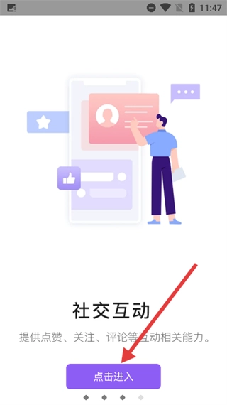 在社交互动引导页面,点击【点击进入】按钮,即可进入下一步操作界面。