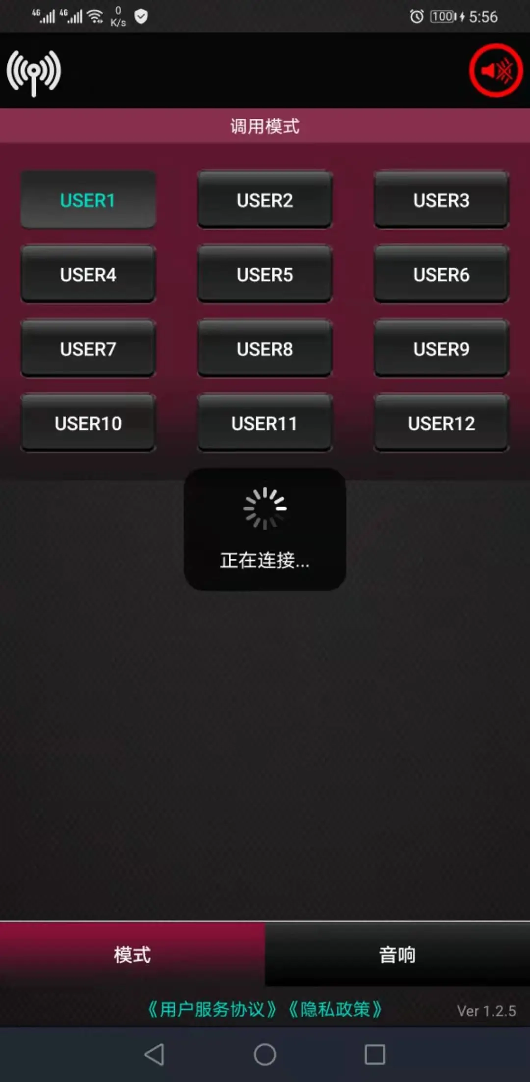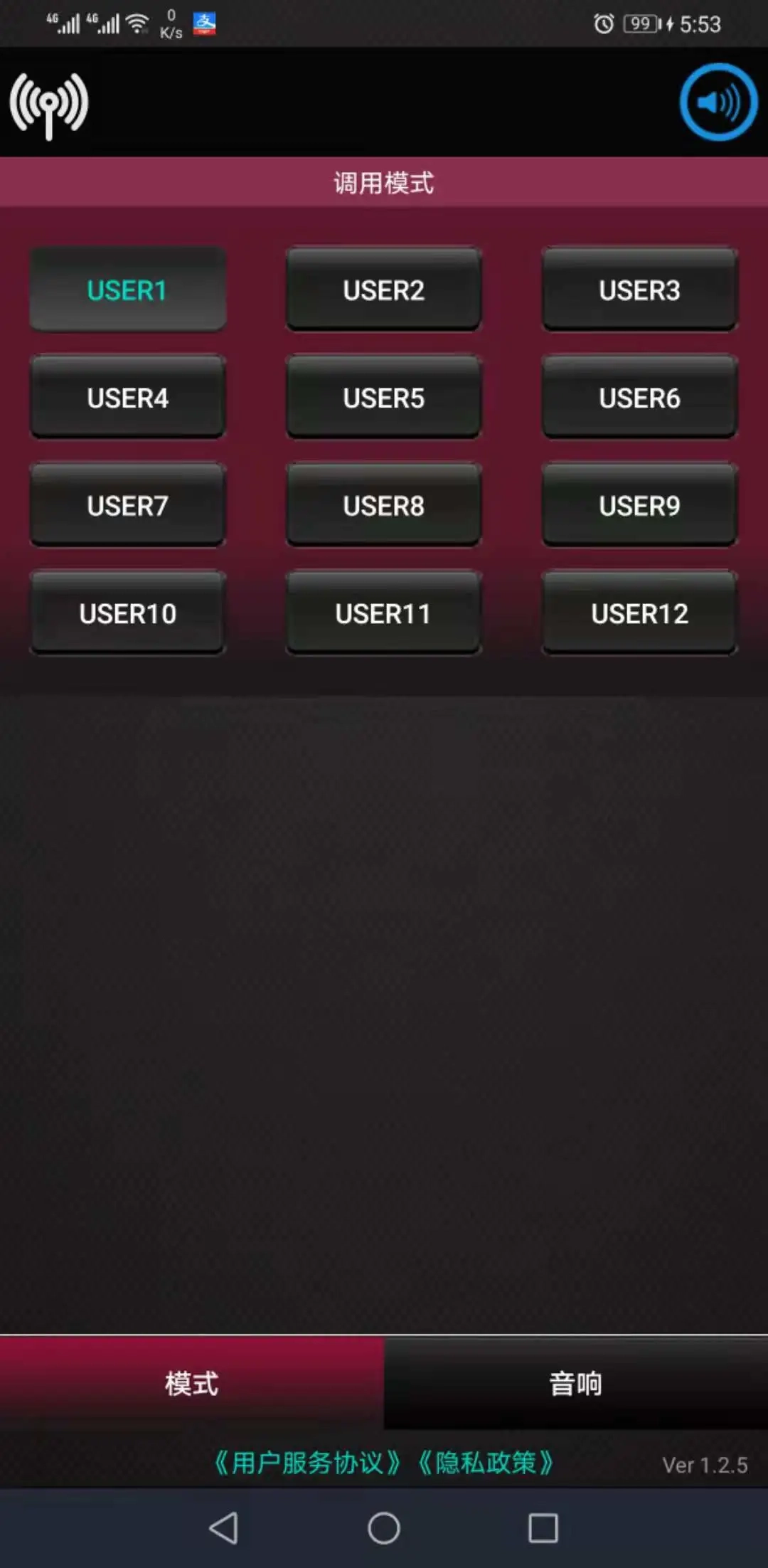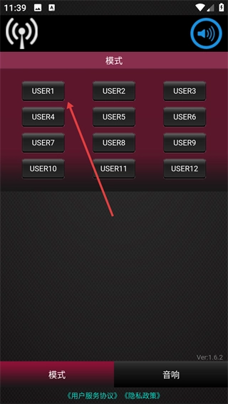 选择【USER1】模式按钮,切换到对应用户模式。