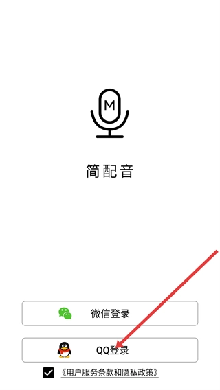在简配音的登录界面,找到并点击【QQ登录】选项,接着完成账号登录的相关操作。