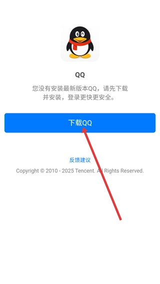 若系统提示你尚未安装最新版本的QQ,请点击【QQ】按钮进行安装,待安装完成后再尝试登录操作。