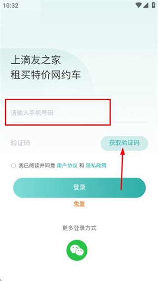 在登录页面填写手机号码后,点击获取验证码。