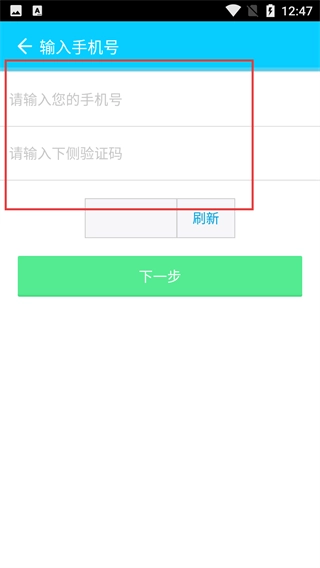 进入填写手机号的页面,按顺序输入您的手机号码以及下侧显示的验证码,全部填写完毕后点击“下一步”按钮,即可继续进行注册流程。