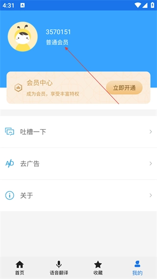 在首页里,点击底部的【我的】按钮,就能进入个人中心页面。