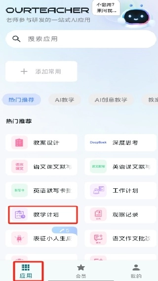 通过手机号登录软件后,进入“应用”页面,找到“教学计划”选项。