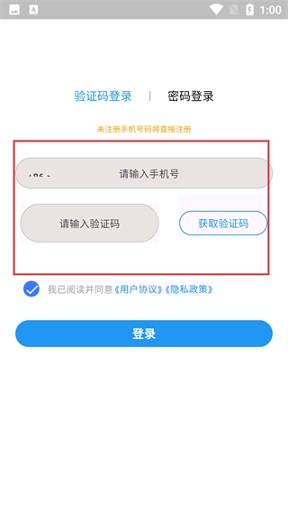 在【验证码登录】页面,先填写【请输入手机号】这一栏,接着点击【获取验证码】按钮,待收到验证码后填入【请输入验证码】的输入框,最后点击【登录】按钮即可完成整个登录操作。