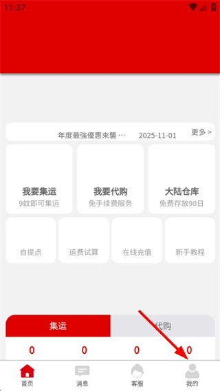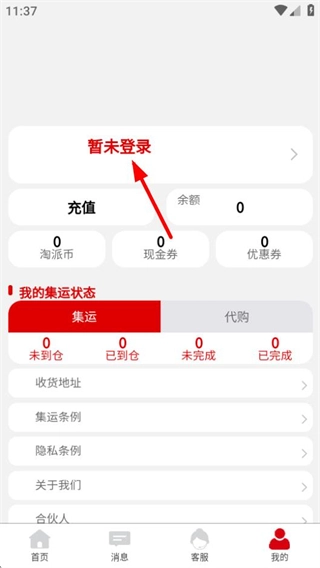 在淘派國際的首页,点击底部导航栏中的“我的”选项,就能进入个人中心页面。