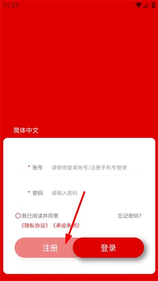 在登录界面,点击注册按钮,可进入账号注册页面。