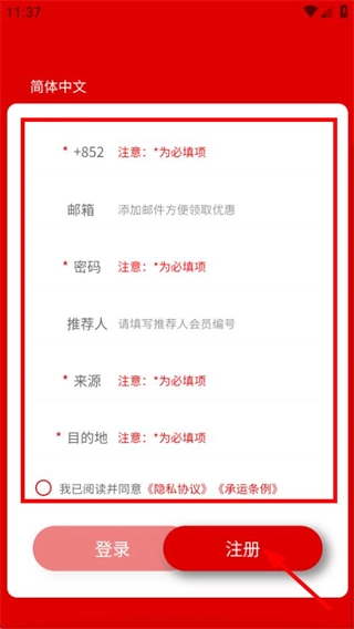 在注册页面,填写相关信息并勾选协议条款后,点击注册按钮就能完成注册流程。