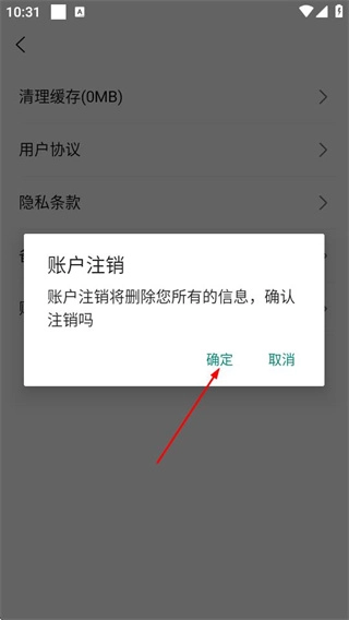 在设置页面点击账号注销选项,随即弹出账户注销确认提示框。