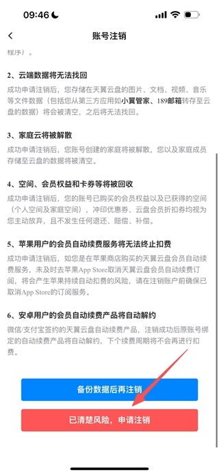 在账号注销说明页面,点击“已清楚风险”,选择“申请注销”,提交账号注销申请。