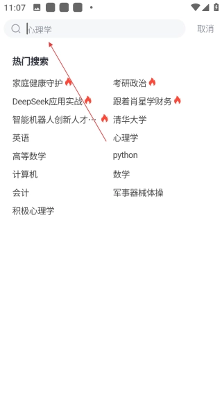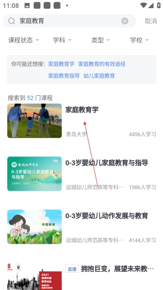 在搜索界面输入你想要学习的内容,比如“家庭教育”,然后进行搜索。